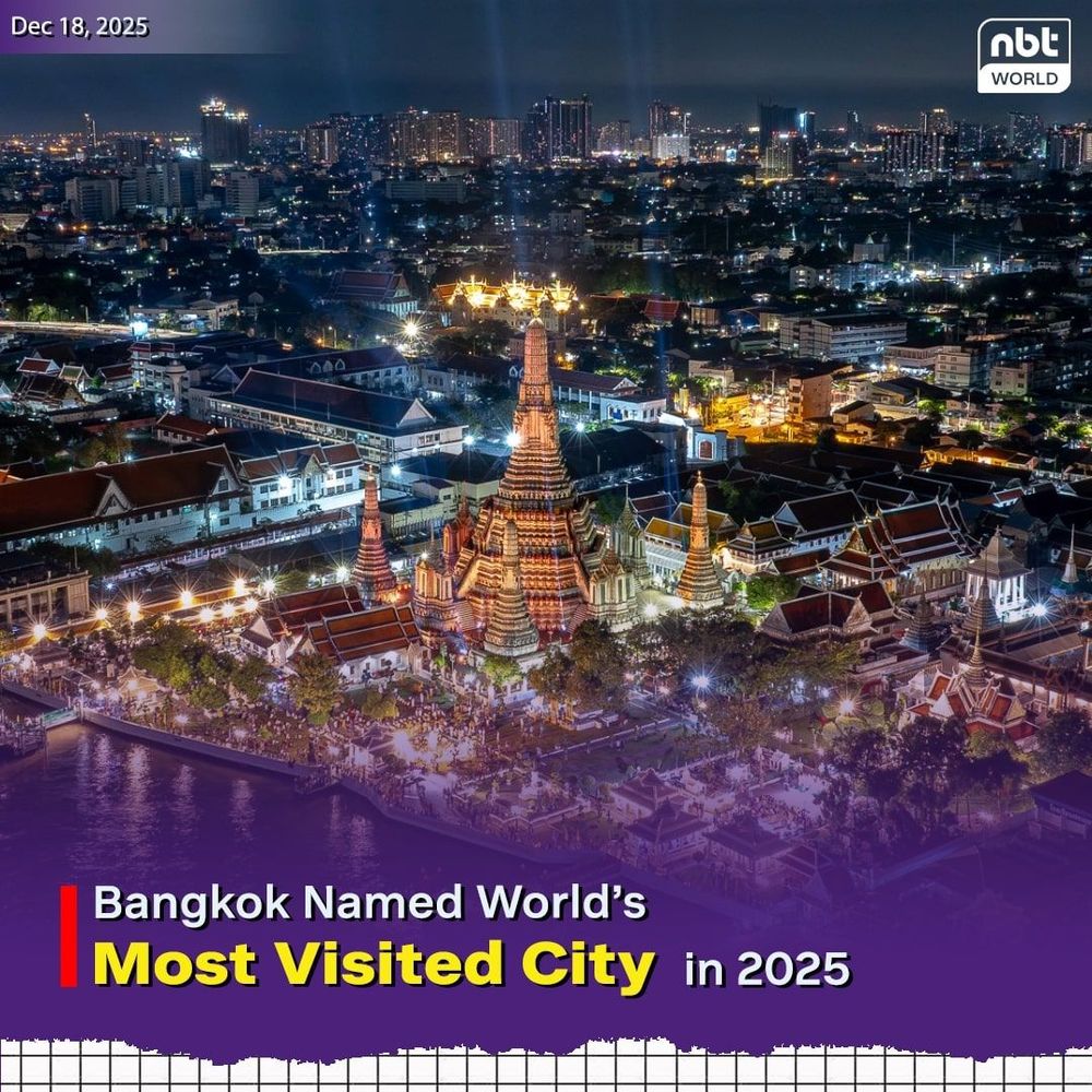 Бангкок занял первое место в мировом рейтинге самых посещаемых городов по версии Top 100 City Destinations Index от Euromonitor International. В 2025 году столицу Таиланда посетили 30,3 млн международных туристов, что сделало её главным туристическим направлением планеты.
