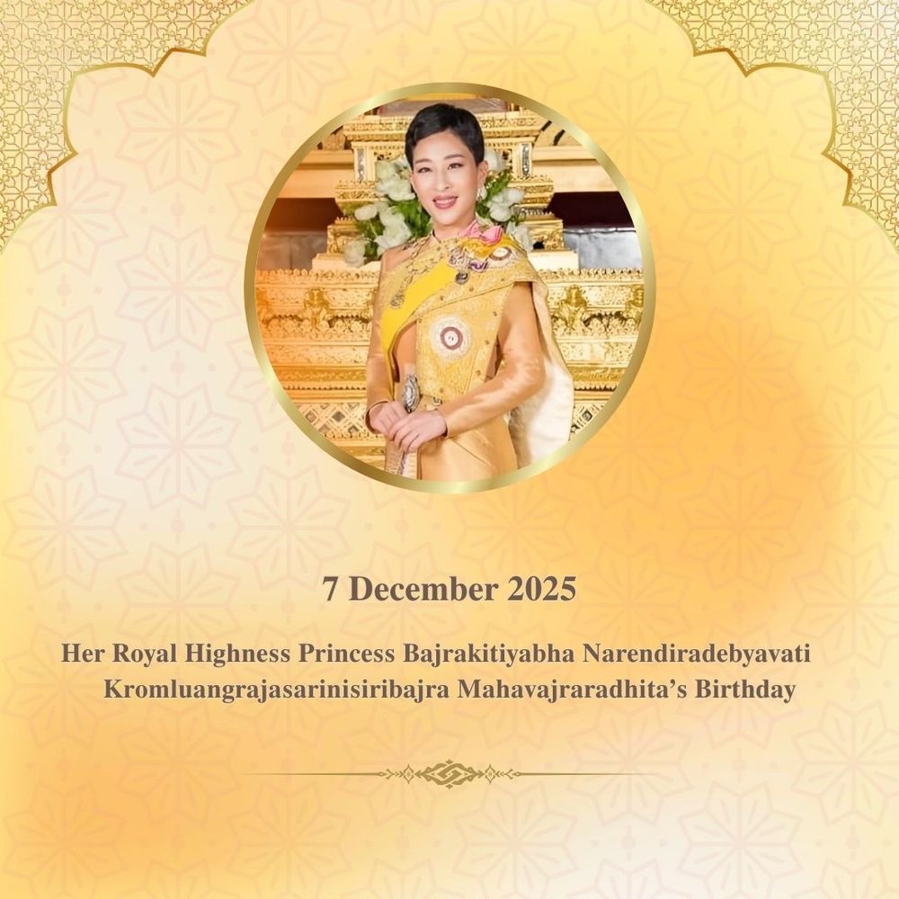 7 декабря Таиланд отмечает день рождения Её Королевского Высочества Принцессы Баджракитиябха Нэрэндирадебявати Кромлуанг Раджасарини Сирибаджра, первой внучки короля Бхумибола Адульядета и королевы Сирикит, а также единственного ребёнка семи детей короля Ваджиралонгкорна от его первой жены, принцессы Соамсавали.