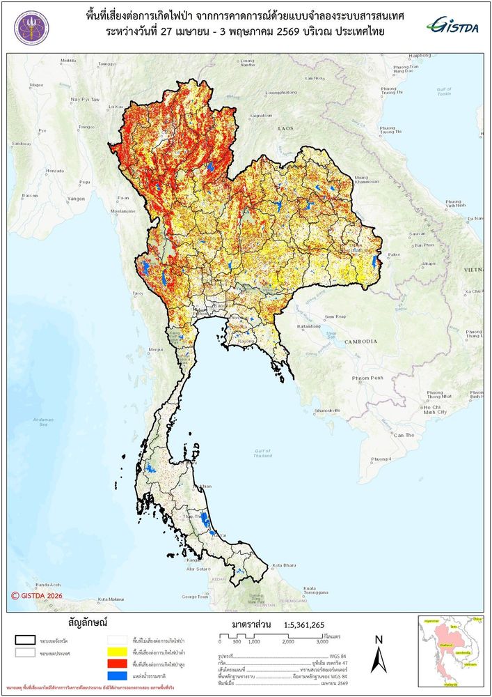 По данным еженедельного прогноза, основанного на спутниковых снимках и геопространственном моделировании, наиболее уязвимыми регионами в период с 27 апреля по 3 мая 2026 года станут Чиангмай, Так, Мэхонгсон, Лампанг и Нан.