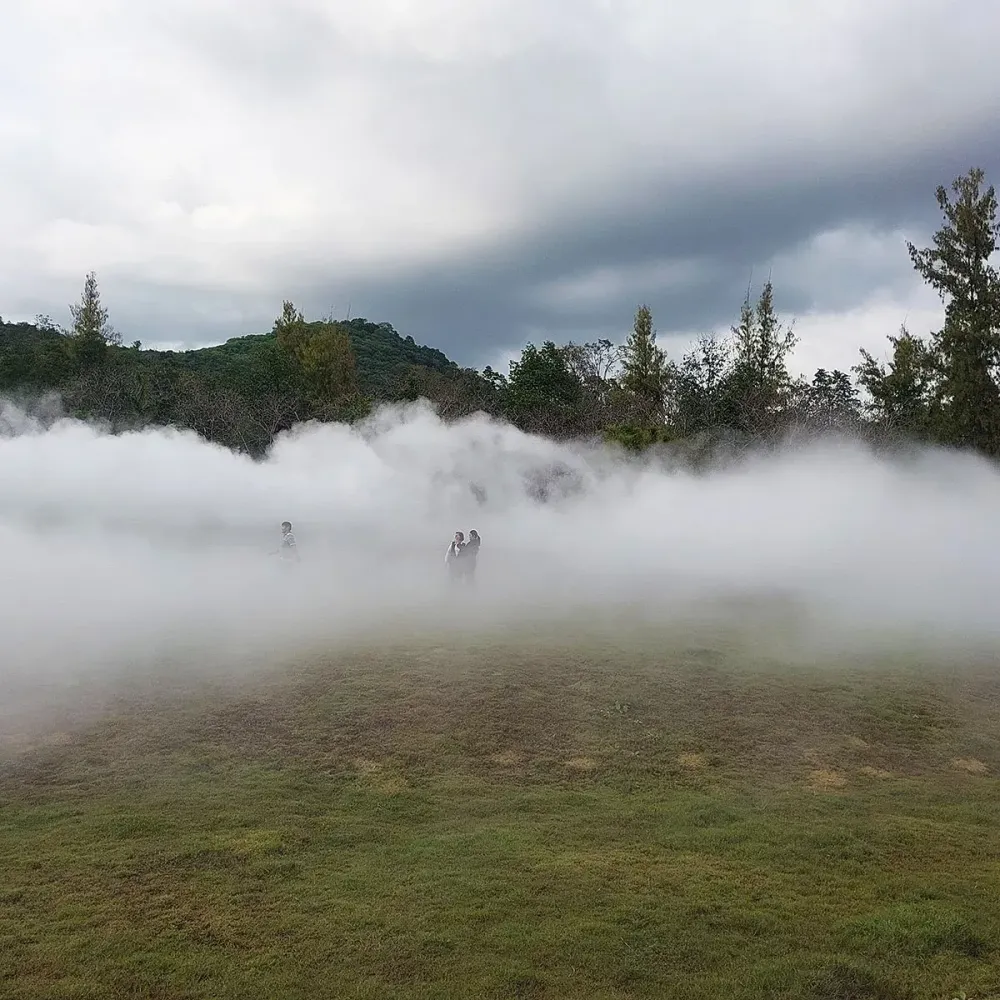 Однако больше всего мне понравилась Khao Yai Fog Forest — самая масштабная на сегодняшний день скульптура японской художницы Фудзико Накая. Прогулка сквозь массивные облака белого тумана, стекающего по зелёным склонам, оказалась освежающей и по-настоящему расслабляющей.