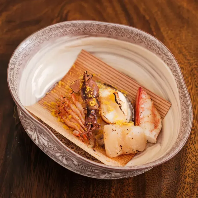 Sushi Saryu принимает всего шесть гостей в день (или восемь — для приватных групп). Это не маркетинговый приём, а принцип ресторанной концепции. Каждый гость становится участником камерного гастрономического спектакля, где всё внимание шефа сосредоточено исключительно на нём.