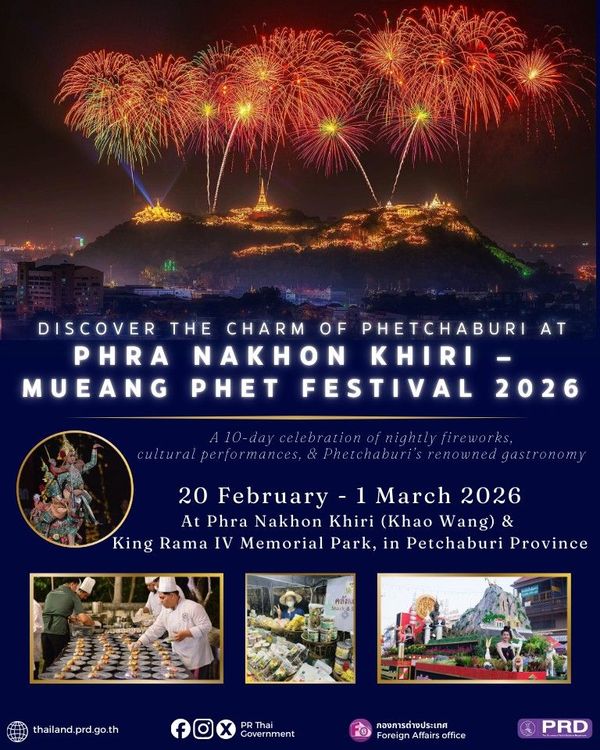 39-й фестиваль Phra Nakhon Khiri – Mueang Phet пройдёт с 20 февраля по 1 марта 2026 года на территории Phra Nakhon Khiri (Khao Wang) и King Rama IV Memorial Park в провинции Phetchaburi Province.