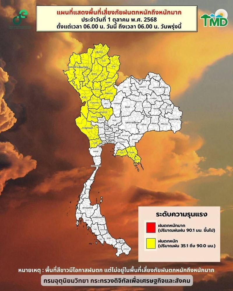 Таиланд в начале октября остаётся под влиянием переменчивых муссонных потоков, что вызывает локальные сильные дожди, риск внезапных наводнений и высокие волны в Андаманском море и Сиамском заливе. Жителям низменных районов и побережья, а также владельцам маломерных судов рекомендуется соблюдать осторожность, избегать выхода в море во время гроз и следить за обновлёнными прогнозами.