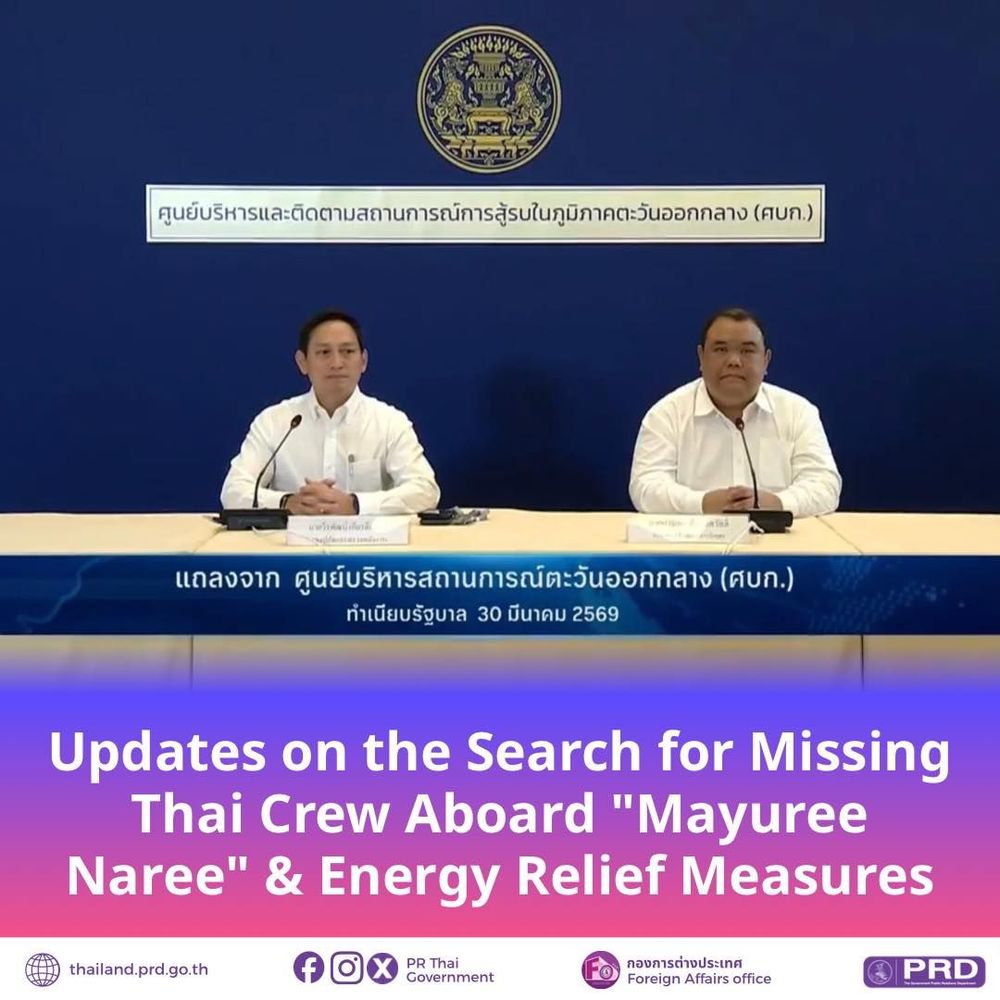 30 марта 2026 года Объединённый центр управления ситуацией на Ближнем Востоке провёл брифинг, на котором были затронуты два ключевых вопроса: поиски пропавших тайских моряков с судна Mayuree Naree и меры по стабилизации энергетической ситуации в Таиланде.