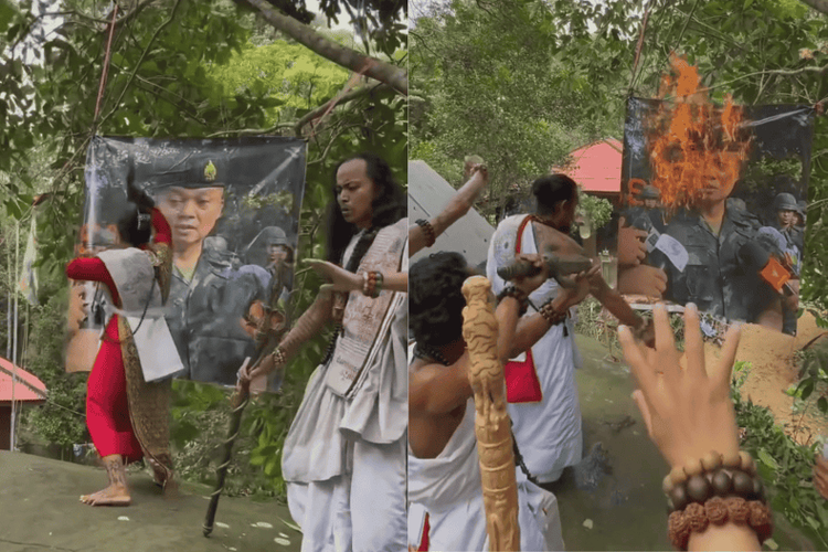 В ролике показана церемония, на которой шаманы выполняют символические действия насилия против фотографии тайского генерала.
