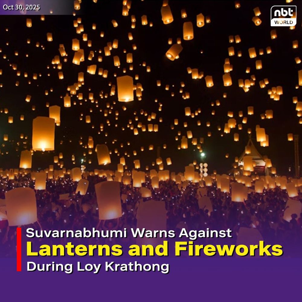 Аэропорт Суварнабхуми в Бангкоке опубликовал предупреждение перед фестивалем Лой Кратонг, который состоится 5 ноября, призывая жителей близлежащих районов, государственные учреждения и частные организации воздержаться от запуска небесных фонариков, фейерверков, воздушных шаров и лазерных лучей.