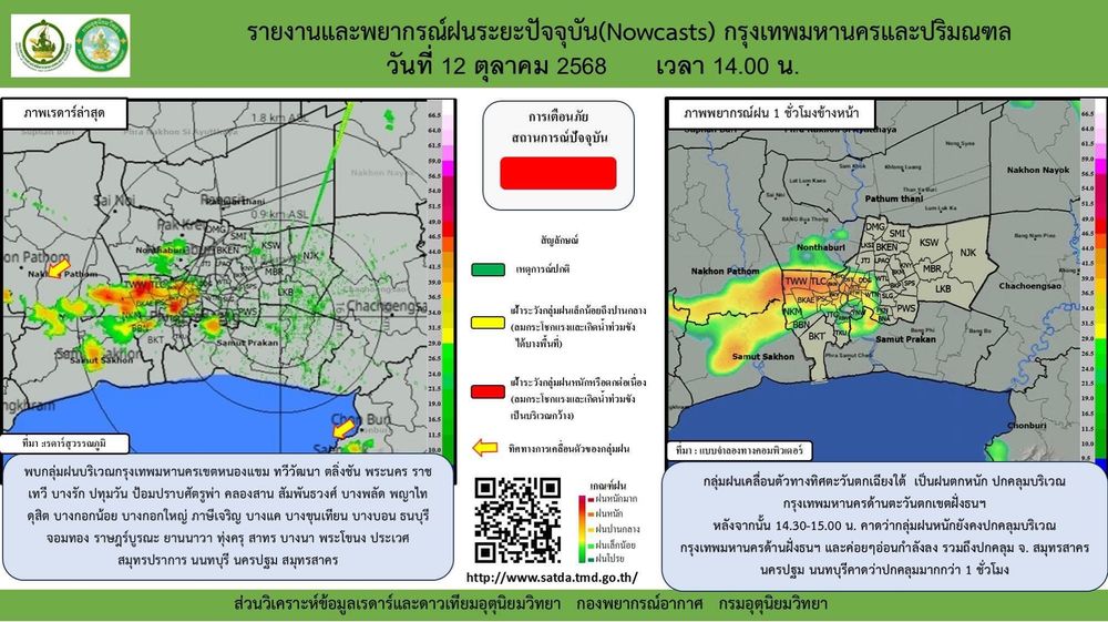 По данным департамента, с воскресенья, 12 октября, до 16 октября, в отдельных районах нижней части Центрального региона, нижней части Северо-востока, Восточного региона, а также в Бангкоке и окрестностях и на Юге ожидаются проливные дожди.