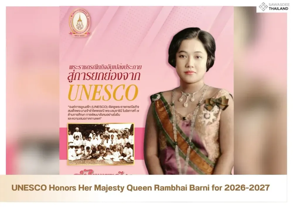 ЮНЕСКО официально включила имя Ее Величества Queen Rambhai Barni, супруги King Prajadhipok (Рамы VII), в перечень памятных дат на 2026–2027 годы.