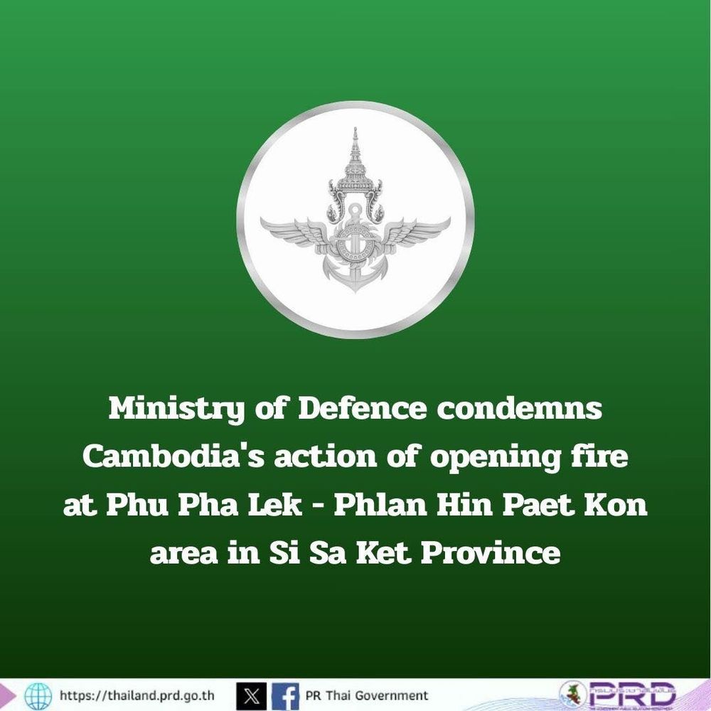 Камбоджийские войска открыли огонь по тайским солдатам в районе Пху Пхи Лек – Пхлан Хин Пает Кон, ранив двух военнослужащих, что привело к ответным действиям Таиланда в рамках международных правил самообороны. Граждане четырёх приграничных провинций были эвакуированы, а тайские силы остаются полностью готовыми защищать население и суверенитет страны.