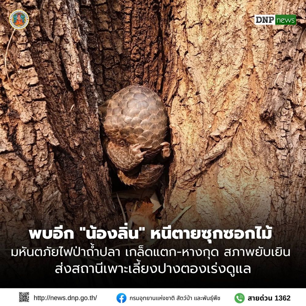 В Таиланде сотрудники национального парка спасли самку панголина, которая оказалась в огненной ловушке во время лесного пожара в провинции Мае Хонг Сон. Животное нашли в крайне тяжелом состоянии — истощенным, задыхающимся и с серьезными травмами тела.