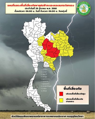 В Таиланде зафиксированы экстремально высокие температуры, достигшие 40,7°C в Лампане, а также предупреждено о надвигающихся летних штормах с сильным ветром, градом и молниями с 29 марта по 1 апреля. Власти рекомендуют жителям быть осторожными, следить за изменениями погоды и подготовиться к возможным ливням и внезапным наводнениям.