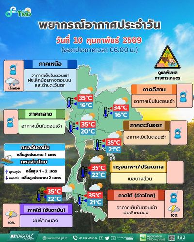 В Таиланде ожидается похолодание на 1–3°C из-за холодного воздушного фронта из Китая, который принесёт грозы, сильный ветер и нестабильную погоду в большинстве регионов страны. Жителям и фермерам рекомендовано соблюдать осторожность, а усиление северо-восточного муссона может вызвать высокие волны в акватории Таиланда, создавая риски для судоходства