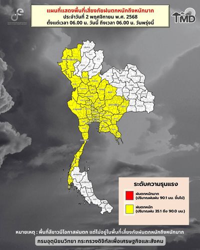 Верхние районы Таиланда ожидают похолодание и ослабление дождей с 10 по 12 ноября, тогда как южные и центральные регионы сохранят лишь локальные кратковременные осадки. Сильный ливень 3 ноября в Бангкоке превысил возможности дренажной системы, но к утру вода в большинстве районов отступила, хотя некоторые улицы требуют долгосрочных улучшений.